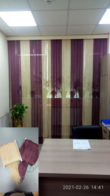 Ламели жалюзи «стринг» не соединяются нижней цепочкой. Не имеют грузиков как у традиционных вертикальных жалюзи. Такая особенность расширяет спектр применения. Позволяет устанавливать вертикальные нитевые жалюзи «стринг» на дверные проемы и порталы. Они идеальны для разделения помещений на рабочие зоны. Жалюзи — шторы «стринг» прекрассно смотрятся и на панорамных окнах, при выходе на балкон или террасу.