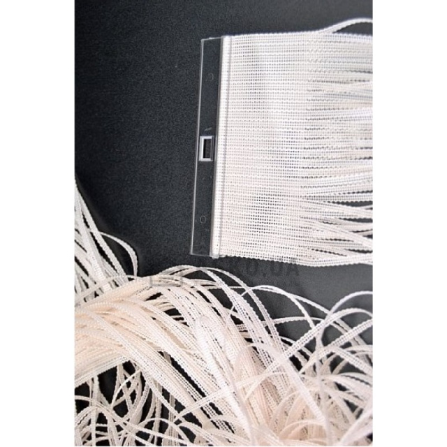 Нитяные вертикальные жалюзи «String» представляют собой набор нитей вместо полосок ткани. Управление такими жалюзи осуществляется также как и вертикальными жалюзи. Можно использовать не только сдвиг в сторону, но и поворот ламелей вокруг своей оси на 180 градусов. Ширина ламелей веревочных жалюзи составляет 89 мм, высота — 3 метра.Такие жалюзи создают нитяной занавес, который позволяет разграничить помещение на отдельные зоны. Это новая тенденция современного дизайна.